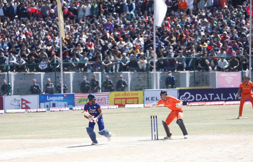 उत्कृष्ट सुरुआत गरेको नेदरल्याण्ड्सका लागि ओपनरद्वय लेभिट र ओ डाउडले पहिलो विकेटका लागि ८३ रनका साझेदारी गरे । नवौँ ओभरमा बलिङका लागि आएका कुशल मल्लले आफ्नो पहिलो ओभरमा दुई विकेट लिँदै नेपाललाई राहत दिलाए पनि त्यो जितका लागि पर्याप्त भएन ।