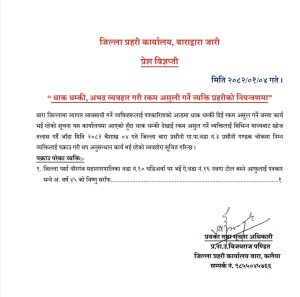 बारा जिल्लामा पत्रकारिताको आडमा व्यापारि व्यवसायीहरूलाई धाक धम्की दिई रकम असुल गर्दै हिँड्ने व्यक्तिलाई बारा प्रहरीले पक्राउ गरेको छ।