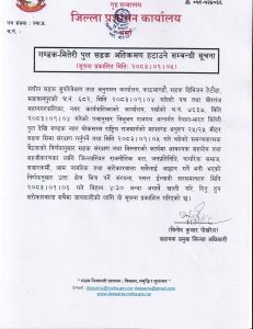 सूचना सहायक प्रमुख जिल्ला अधिकारी विनोद कुमार पोखरेलद्वारा जारी गरिएको हो।